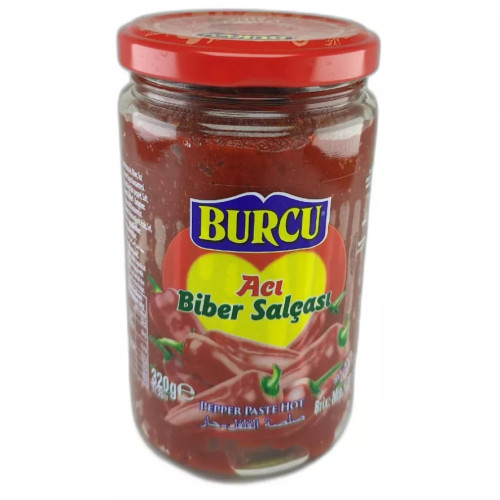 BURCU Перцовая паста (TATLI BIBER SALCASI) — густая сладкая паста из перца в стеклянной банке. Придаёт яркий вкус мясу, птице, рагу и традиционным турецким блюдам, а также годится как намазка на хлеб. Без ГМО и искусственных ароматизаторов, подходит вегетарианцам; хранить в прохладном, сухом месте, вдали от солнца.