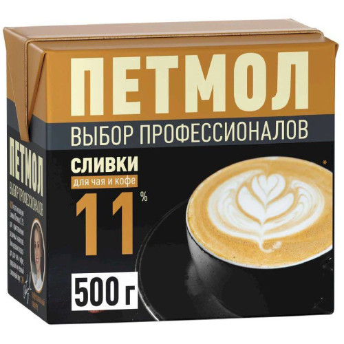Сливки Петмол ультрапастеризованные 11%, 500 мл — натуральный продукт из коровьего молока с умеренной жирностью и длительным сроком хранения. Источник кальция, витаминов B, PP, A и минералов. Отлично подходят в чай и кофе, для коктейлей, десертов, крем‑супов и соусов.