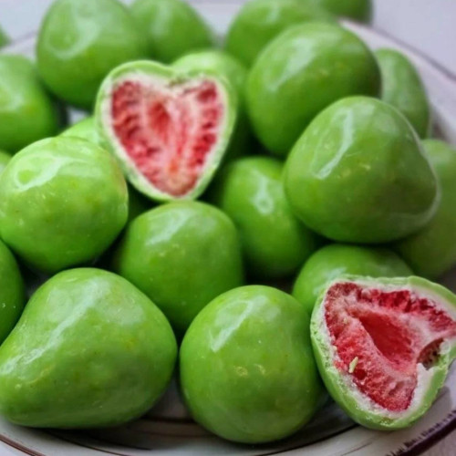 Клубника лаймберии XXL, сублимированная клубника в белом шоколаде и в глазури лайм