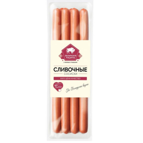 Состав: говядина, сливки 20% жирности, свинина, вода, нитритно-посолочная смесь (соль, фиксатор окраски нитрит натрия), соль, сахар, регулятор кислотности: фосфаты пищевые, антиокислитель: аскорбинат натрия, пряности (перец черный, перец душистый, орех мускатный), усилитель вкуса и аромата: глутамат натрия.