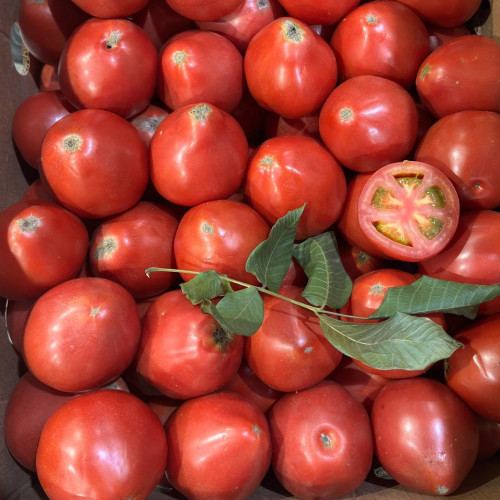 Крупные, насыщенно‑красные плоды с плотной сочной мякотью и лёгкой сладостью. Прочная упругая кожура защищает от растрескивания при созревании и при термообработке. Идеальны для салатов и свежих нарезок. Для консервации подходят хуже, но отлично поддаются заморозке и идут на соусы или пасты. Форма может быть от почти круглой до слегка вытянутой в зависимости от погоды, на вкусе это не сказывается.