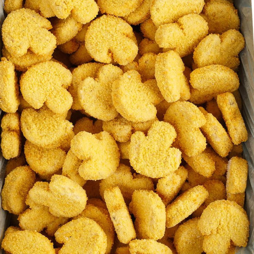 Состав: фарш минтая, вода питьевая, продукт плавленный с сыром (вода питьевая, рафинированное дезодорированное пальмовое масло, антиокислитель E306, сухое обезжиренное молоко, эмульгаторы (E1414, E452i), регулятор кислотности E331iii, казеинат натрия, молоко пастеризованное, бактериальная закваска мезофильных молочных микроорганизмов, молокосвёртывающий ферментный препарат микробного происхождения, краситель E160a, соль), сухари панировочные (мука пшеничная, соль, дрожжи, куркума, ароматизатор), панировочная смесь (вода питьевая, мука пшеничная, сыр сухой (молоко коровье, молокосвёртывающий фермент животного происхождения, закваска на основе молочнокислых бактерий, соль, уплотнитель (хлорид кальция), мальтодекстрин, эмульгатор E339ii), соль, загустители (гуаровая камедь, ксантановая камедь)), масло растительное, клетчатка соевая, соевый белок, лук сушёный, клетчатка пшеничная, грибы сушёные, соль, смесь специй, пряности, декстроза, сахар, усилители вкуса и аромата (E621, E627, E631), загустители (E412, E415, E461, E466), эмульгатор E460i, краситель E171, регуляторы кислотности (E500i, E576), антиокислители (E300, E319, E330), ароматизаторы. Аллергены: может содержать следы ракообразных, моллюсков, яиц.