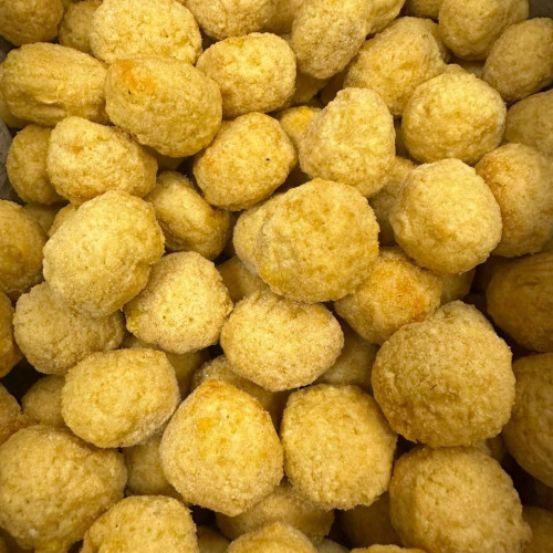 - тесто (мука пшеничная хлебопекарная высшего сорта, вода питьевая, продукты яичные, соль, сахар, пряности, натуральный краситель аннато). Обжарено во фритюре.