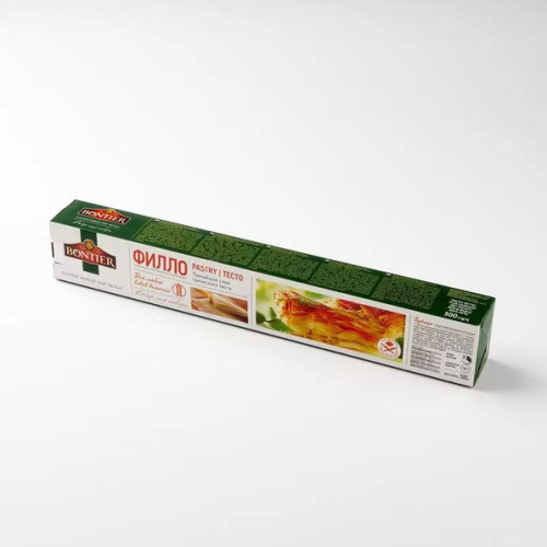 Тонкие листы фило делают с минимальным добавлением воды и жира. Их используют для выпечки как сладких, так и солёных блюд. При приготовлении каждый пласт смазывают растопленным сливочным или оливковым маслом, чтобы получить характерный нежный хруст. После выпечки листы становятся хрупкими и приобретают золотисто‑коричневый оттенок.